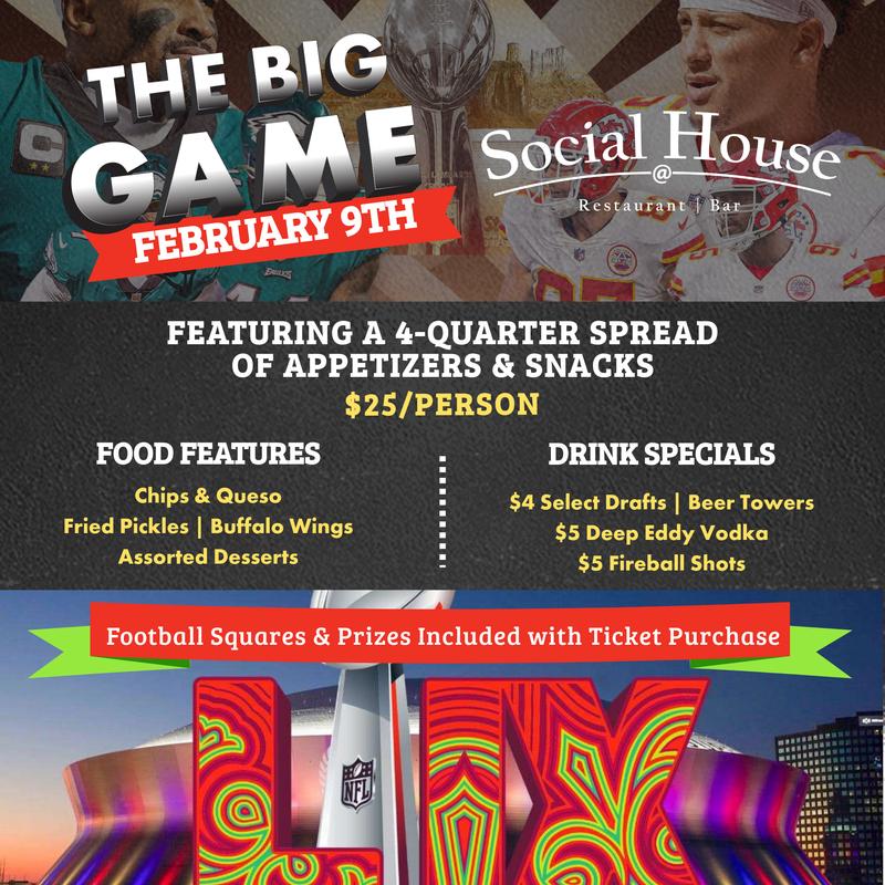 Social House is a casual restaurant-bar that specializes in all forms of social interaction. With an award-winning scratch kitchen to a great selection of beers, wines, and signature cocktails on tap, we can cater to any social gathering. Big screen televisions that let you watch the game from every angle. With our magnificent brunch and happy hour Social House always wants you to Stay Social!